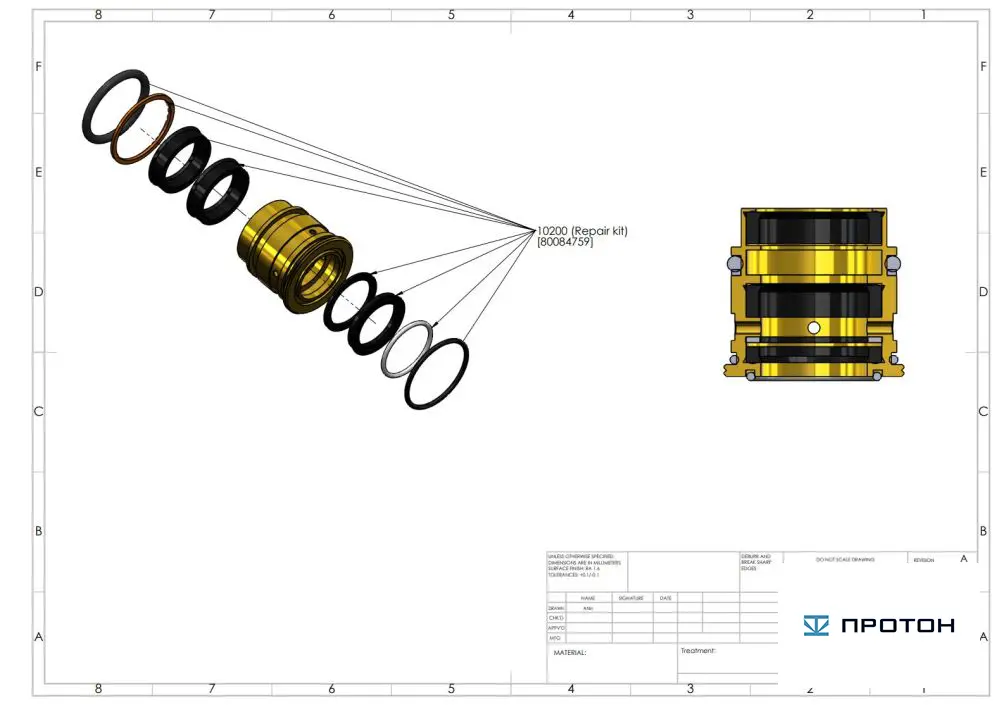 Ремкомплект гидравлического картиджа 80084759 KMT, США / HYDRAULIC CARTRIDGE SEAL ASSEMBLY